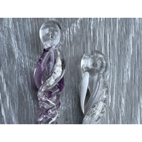 My Glass art is one of kind and always 100% handmade. Using high quality borosilicate glass “hard glass” ( or Pyrex- same as your casserole dish) meaning it is very durable. The glass shifts from solid into a molten liquid state by using a torch fueled by a mixture of oxygen and propane, generating temperatures beyond 2500°F. Literally shaping art from molten glass with various tools.