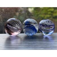 My husband and I built out my glass studio in our shop summer of 2024 and I am over the moon to have the space and luxury to once again create at home. I have been a Glass Artist for 20 years; selling at craft fairs and also teaching. I am now offering Cremation Art; I can add a dash of ash into a marble, suncatcher or pendant for you to wear. Keeping your loved one close and encased forever in solid glass. Creating a keepsake of your family member or pet- with the upmost respect and care, has been a dream of mine for many years. Look into my listings for info or contact me via email before purchasing if you have any questions.