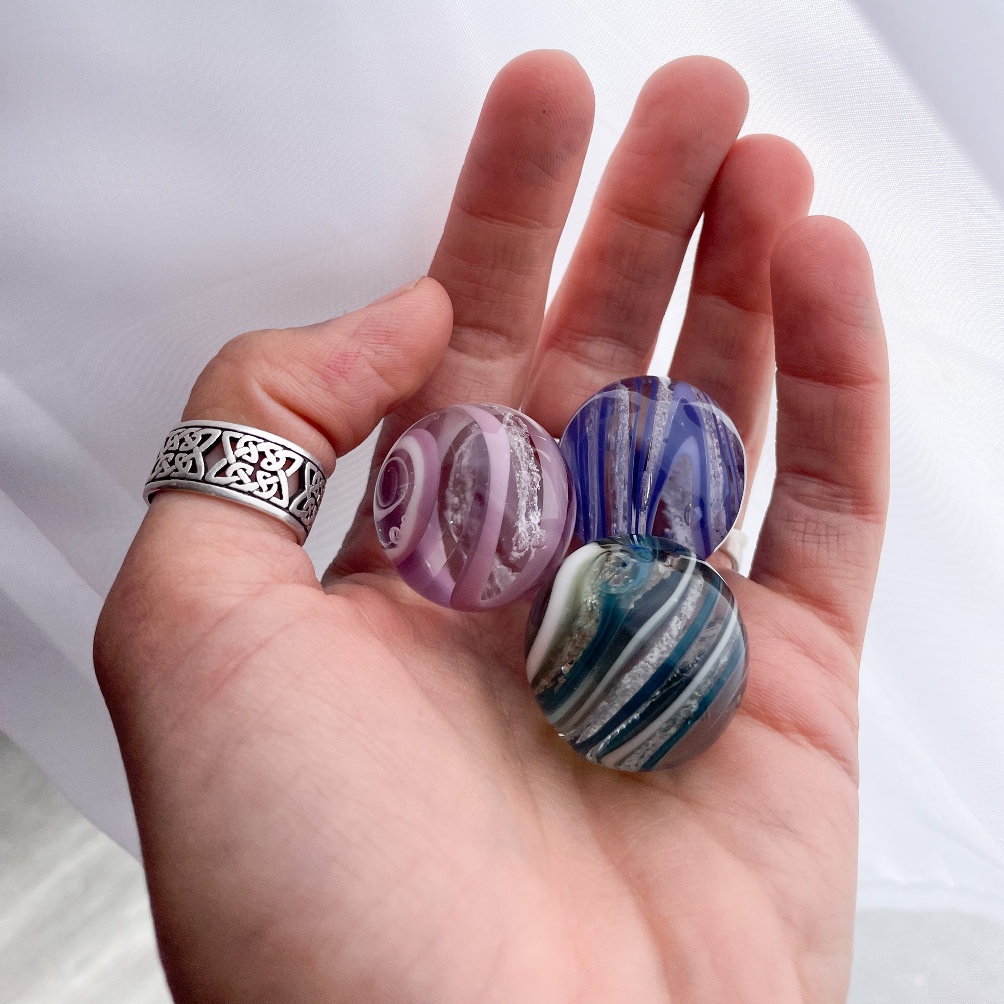 This Marble is a unique way to capture and preserve your loved ones remains. I twist in a color of your choice and a line of the ashes to create these Marble.